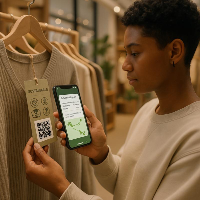 Scanning a QR code on a shirt and learning it was ethically sourced from an organic cotton farm builds powerful emotional resonance with conscious consumers.
